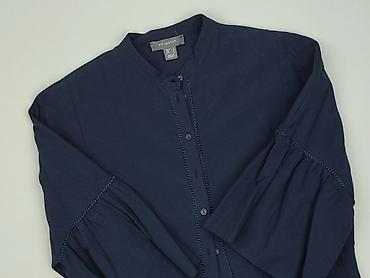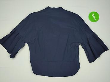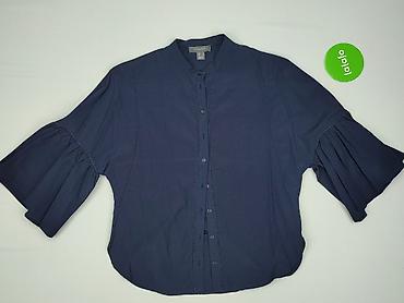Idealna do stylizacji casual i smart-casual – stójka i falbaniaste rękawy dodają kobiecego charakteru, a gładki granat ułatwia łączenie z jeansami, spódnicami i eleganckimi spodniami. Dla kobiety, rozmiar EU 36.