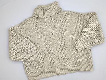 Sweter damski Primark, rozmiar S - Krój: luźny, oversize z opuszczoną linią ramion - Golf: wysoki, miękko układający się - Rękawy: 3/4 - Długość: za biodra, lekko zaokrąglony dół - Kolor: jasny be...