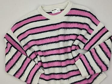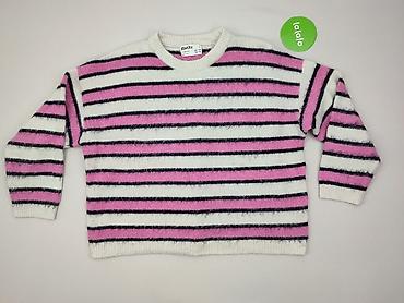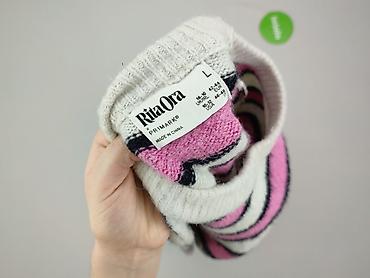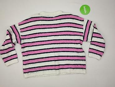 Sweter damski Rita Ora x Primark, rozmiar L (UK 14–16, EUR 42–44, USA 10–12). Miękki, puszysty materiał o wyraźnym, miłym w dotyku włosku. Wzór w poziome pasy: biel, róż i ciemny granat/czarny. Fason swobodny, z opuszczoną linią ramion. Okrągły dekolt, długie rękawy zakończone ściągaczami; ściągacz także u dołu. Idealny na chłodniejsze dni – ciepły i komfortowy, a jednocześnie lekki. Uniwersalna długość do bioder, dobrze łączy się z jeansami i spódnicami. Etykieta wewnętrzna widoczna na zdjęciach.