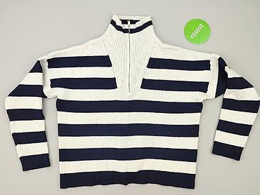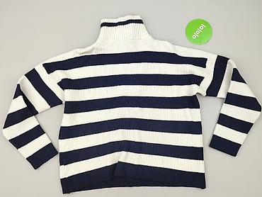 Sweter damski Primark Cares, rozmiar M. Model w marynarskie, poziome pasy w kolorach granatowym i białym. Gruby, prążkowany splot (rib), przyjemnie elastyczny.