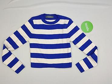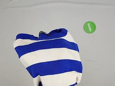 - Wzór: szerokie, poziome pasy w kolorze kobaltowym i białym (marynistyczny styl)