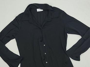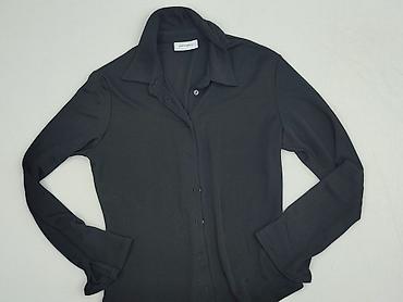 Uniwersalna czarna koszula idealna do stylizacji biurowych i casualowych; elastyczna tkanina zapewnia wygodę i dobre dopasowanie. Dla kobiety, produkt używany.