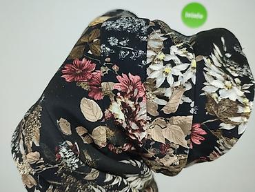 - Wzór: gęsty, wielokolorowy motyw kwiatowy na czarnym tle (odcienie beżu, różu, bordo, bieli, żółci)