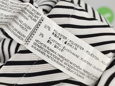 - Wzór: biało‑czarne, wąskie paski (ukośne z przodu, poziome z tyłu) – optycznie wysmuklają sylwetkę