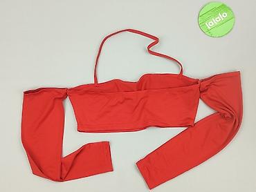 Czerwony top damski Bershka - Krój: crop top z krótkim rękawem - Dekolt: okrągły - Dół: asymetryczny z ozdobnym sznurkiem/przeszyciem o wyglądzie koralików - Materiał: 94% poliamid, 6% elastan – e...