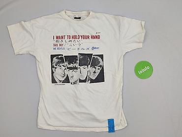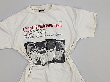 - Model: biały T‑shirt z nadrukiem „I WANT TO HOLD YOUR HAND / THIS BOY” oraz grafiką zespołu na przodzie; tył gładki