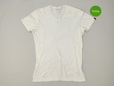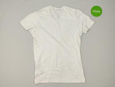 Biała koszulka męska z krótkim rękawem - Rozmiar: M/L (metka wewnętrzna) - Fason: klasyczny T-shirt z okrągłym dekoltem - Kolor: biały - Materiał: miękka, cienka bawełna (przyjemna w dotyku; nadru...