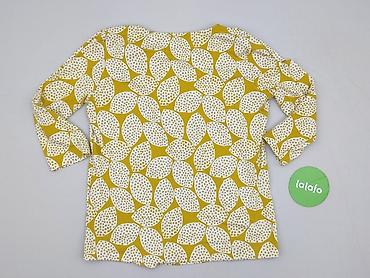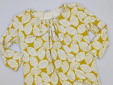 Bluzka damska QUIOSQUE, rozmiar 38. - Fason: prosty, lekko dopasowany, z delikatnie obniżoną linią ramion - Rękaw: 3/4 - Dekolt: łódka - Wzór: drobne liście w kolorach granatu, bieli i musztardowej...