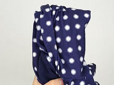 - Dekolt: szeroki kołnierz z kontrastową, granatową wstęgą/krawatką z przodu