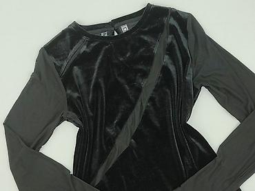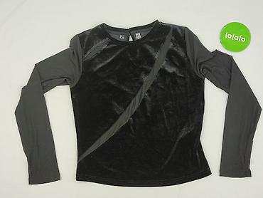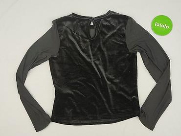 Stylowa czarna bluzka łącząca miękki welur z gładkimi, elastycznymi panelami – idealna do spodni i spódnic, zarówno na co dzień, jak i na wieczór. Dla kobiety. Używana. Stan: bardzo dobry.