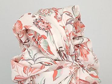 - Kolorystyka: jasne tło w odcieniu ecru z nadrukiem kwiatów i liści w tonach koralowego, pudrowego różu, miętowego i szarości