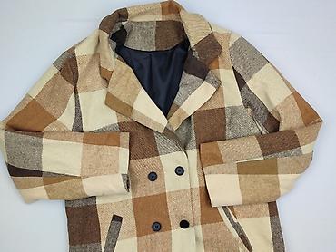 Beżowy damski płaszcz/kardigan TES, rozmiar XXL - Fason: prosta, lekko wydłużona sylwetka, rozcięcia po bokach - Zapięcie: rząd guzików z przodu - Kołnierz: klasyczny, wykładany - Kieszenie: dwie ...