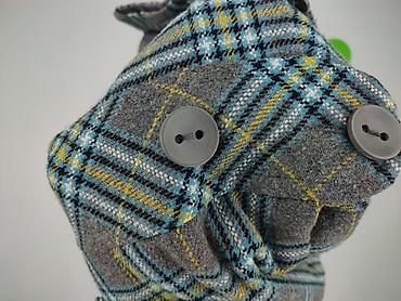- Wzór: szkocka krata w odcieniach szarości z akcentami turkusu, czerni i żółci