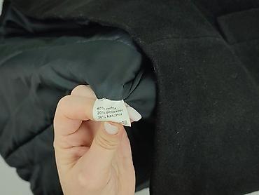 Damski płaszcz/krótki płaszcz z wełny, czarny, rozmiar M. - Skład materiału: 50% wełna, 50% poliester (na metce); ocieplana, pikowana podszewka. - Wyprodukowano we Włoszech. - Fason dopasowany, dł...