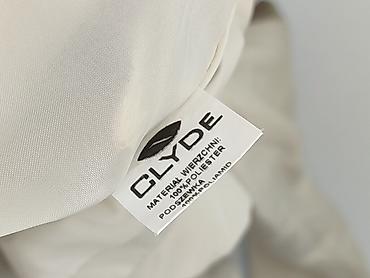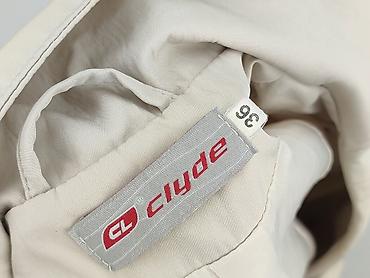 Elegancki, lekki płaszczyk idealny na wiosnę i jesień; neutralny odcień beżu łatwo łączy się z codziennymi i bardziej formalnymi stylizacjami. Marka: Clyde. Rozmiar z metki: 36.