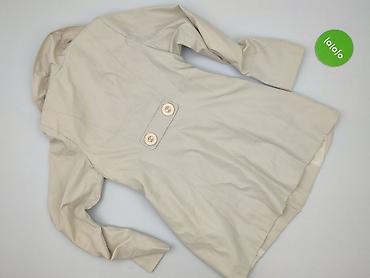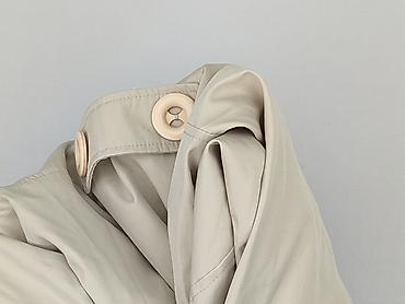 Damski płaszcz/trencz w kolorze jasnego beżu - Fason: prosty, lekko oversize, długość za kolano - Zapięcie: rząd dużych, ozdobnych guzików z połyskiem - Kołnierz: klasyczny, usztywniany przeszycia...