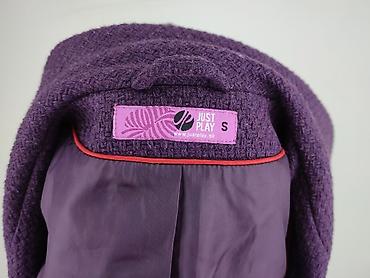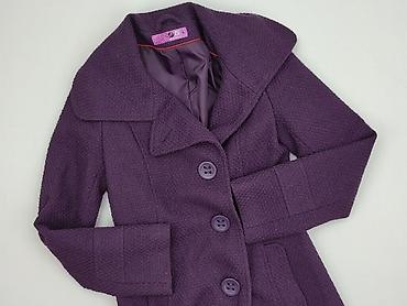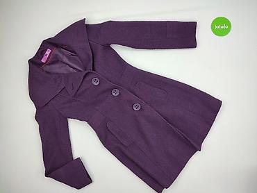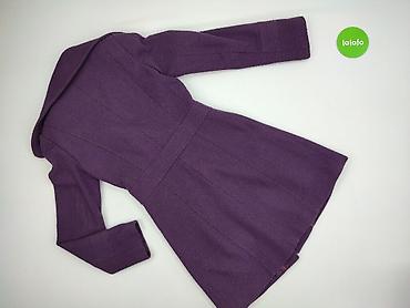 Damski płaszcz/krótka kurtka wełniana w kolorze głębokiego fioletu. - Materiał: 70% wełna, 30% bawełna; śliska podszewka w odcieniu fioletu - Rozmiar z metki: 8 (odpowiednik europejskiego 36 – pro...Rozmiar: