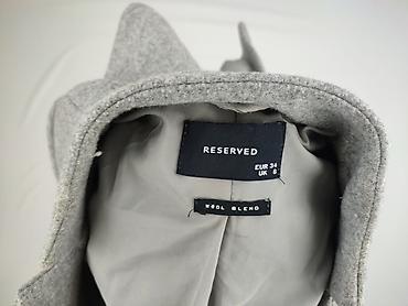 Płaszcz damski Reserved, rozmiar EU 38 (UK 10), z wełny z domieszką – Wool Blend (skład na metce: 50% wełna / 50% poliester). - Kolor: jasnoszary melanż - Fason: prosty, lekko taliowany, długość ...