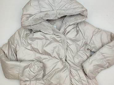 Damski płaszcz z kapturem, beżowy, ocieplany sztucznym futrem. - Rozmiar na metce: L - Materiał: 100% poliester (miękka, zamszowa faktura na zewnątrz; grube, pluszowe ocieplenie wewnątrz i w kaptu...