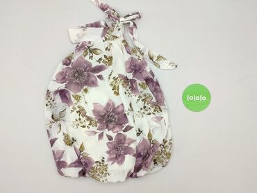 Bez rękawówTen rampers damski wyróżnia się delikatnym wzorem w fioletowe i zielone kwiaty na białym tle. Charakteryzuje się luźnym krojem, który zapewnia swobodę ruchów i komfort noszenia, idealnie nadając się na ciepłe dni. Wiązanie na szyi pozwala na regulację i dopasowanie do sylwetki. Materiał jest lekki i przewiewny, co czyni go doskonałym wyborem na letnie stylizacje. Rampers jest łatwy w pielęgnacji i można go nosić na wiele okazji.