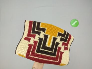 - Wzór: geometryczny, inspirowany stylem retro/folk – kontrastowe motywy w kolorach: musztardowy, bordowy, czekoladowy i ecru