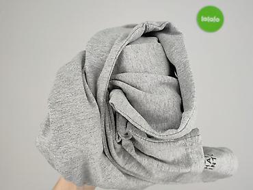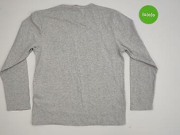 Szara bluzka z długim rękawem - Kolor: melanż szary z cienkimi, pionowymi prążkami (delikatne czerwone i czarne nitki). - Krój: luźny, prosty, z okrągłym dekoltem wykończonym czarną lamówką. - Ręk...Stan: