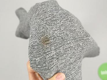 - Kolor: melanż szary z jaśniejszą, prążkowaną podszewką/wykończeniem widocznym przy dekolcie i mankietach