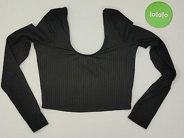 Czarny crop top H&M - Krój: krótki (crop), luźny, z opuszczoną linią ramion - Rękaw: krótki, szeroki - Dekolt: okrągły - Wzór/tekstura: delikatny, pionowy prążek na całej powierzchni - Materiał: 9...