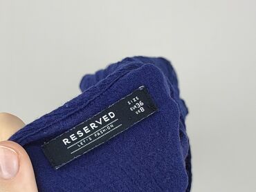 Ciemnoniebieska welurowa bluzka damska marki Reserved w rozmiarze S. Charakteryzuje się okrągłym dekoltem oraz długimi rękawami. Bluzka ma marszczenie na dole, zakończone sznurkiem, co pozwala na r...
