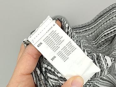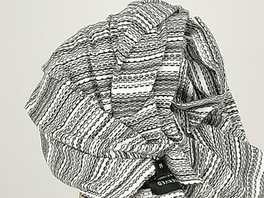 - Wzór: poziome paski w odcieniach szarości, bieli i czerni; lekko fakturowana dzianina