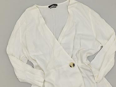 Bluzka damska Reserved - Model: luźna bluzka z długim rękawem - Kolor: biały/ecru - Dekolt: w kształcie litery V, zapinany na listwę z 4 metalowymi, złotymi napami - Detale: marszczenia/szmizjerko...