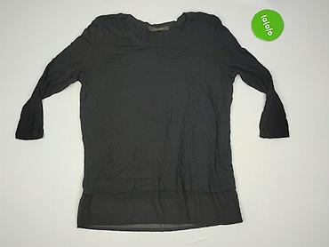 Bluzka damska Reserved, rozmiar M. - Kolor: czarny z delikatnym, jasnym melanżem - Fason: prosty, z okrągłym dekoltem - Rękawy: 3/4, z dekoracyjnymi wstawkami z materiału o satynowym połysku wzdłu...
