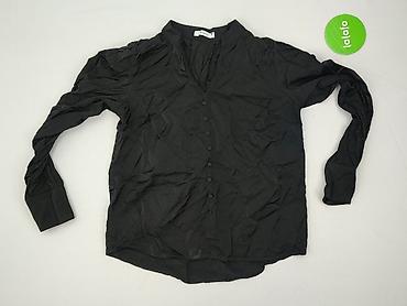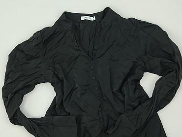 Damska koszula/bluzka z długim rękawem - Kolor: czarny - Rozmiar: M (metka widoczna na zdjęciu) - Krój: minimalistyczny, z kołnierzykiem stójką i zakładką maskującą zapięcie z przodu - Materiał: 9...