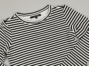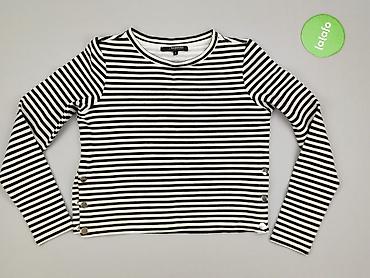 Bluzka damska Sinsay, rozmiar M. - Krój: klasyczny T-shirt z długim rękawem - Wzór: czarno‑białe, poziome paski (marynarski styl) - Dekolt: okrągły, obszyty ciemną lamówką - Materiał: miękka, elas...
