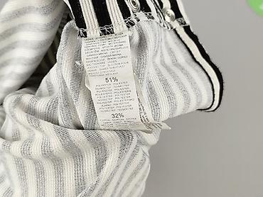 Dla: kobieta. Rozmiar z metki: S. Marka: RESERVED. Kolor: czarno-biały. W paski. Długi rękaw. Okrągły dekolt. Dekoracyjne guziki/napy po bokach. Skład: 51% poliester, 32% bawełna (+ domieszka elastanu).