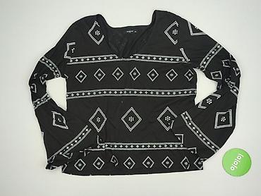 Bluzka damska Reserved, rozmiar M. - Kolor: czarny - Fason: dopasowany, z długim rękawem i okrągłym dekoltem - Przód: duży nadruk w odcieniach szarości z napisem oraz aplikacjami imitującymi perły...