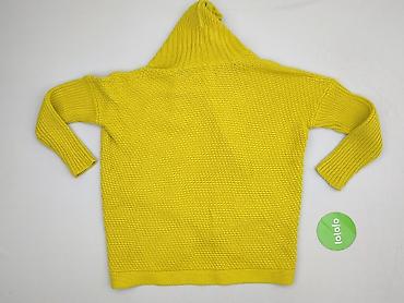 - Splot: mieszany – korpus i rękawy w gęstym, fakturowanym splocie; przód z szerokimi, podłużnymi prążkami; dół i wykończenia w ściągaczu