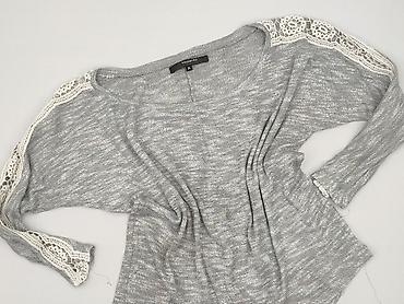 Sweter damski Clockhouse (Elements Collection) - Rozmiar: S - Kolor: jasnoszary melanż - Fason: kopertowy/dekolt w serek, długi rękaw - Detale: ażurowe, koronkowe wstawki na ramionach - Materiał: ...
