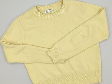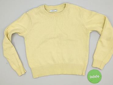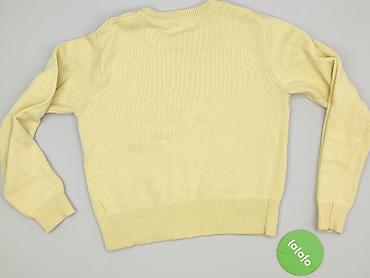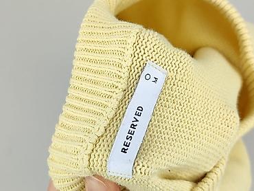 Żółty sweter marki Reserved, idealny do noszenia na co dzień. Charakteryzuje się okrągłym dekoltem i długimi rękawami zakończonymi ściągaczami. Dół swetra również wykończony jest ściągaczem, co zapewnia lepsze dopasowanie. Jest to praktyczny element garderoby, odpowiedni na różne okazje.