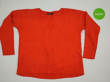Sweter damski, prążkowany, pomarańczowy - Krój: dopasowany, dzianina o wyraźnym, elastycznym ściągaczu - Dekolt: szeroki/łódkowy - Rękawy: długie - Rozmiar z metki: S - Skład: 100% poliester (info...
