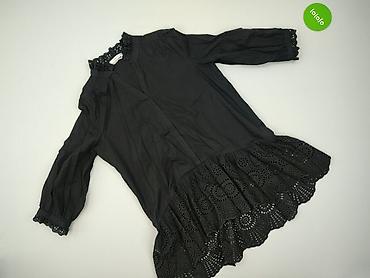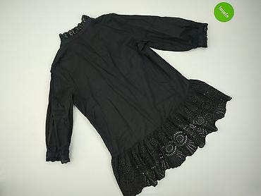 Czarna tunika damska, rozmiar L. - Fason: luźny, z lekko rozszerzanym dołem - Dół wykończony falbaną z przodu i z tyłu - Rękawy 3/4 z możliwością podpięcia (guzik przy mankiecie) - Dekolt okrągły ...