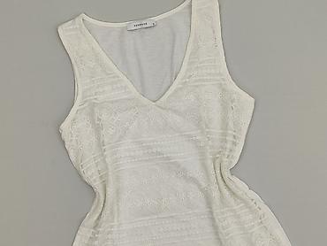 Top damski RESERVED, rozmiar XS. - Kolor: biały - Krój: bez rękawów, okrągły dekolt - Przód zdobiony licznymi sznureczkami/frędzlami tworzącymi dekoracyjny motyw - Tył gładki, lekko prześwitujący -...