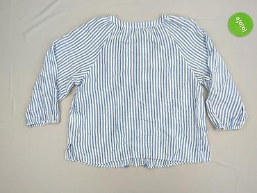 Bluzka damska Medicine, rozmiar M. - Krój: luźny, lekko taliowany - Dekolt: w kształcie litery V - Rękawy: krótkie z falbaną - Wzór: biało‑niebieskie paski ułożone ukośnie i pionowo (optycznie wys...