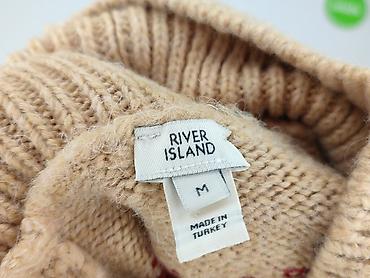 Damski sweter River Island - Model: golf/ półgolf z prążkowanym, elastycznym ściągaczem przy szyi, mankietach i dole - Kolorystyka: biało‑czarna, poziome pasy; na piersi i rękawach żakardowy napis...