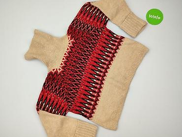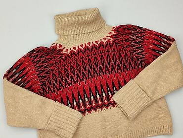 Sweter damski MLE, rozmiar S, wyprodukowany w Polsce. - Fason: oversize z wysokim, miękkim golfem - Kolor: karmelowy/beżowy - Dzianina o melanżowej fakturze, elastyczna i miła w dotyku - Skład: 30...