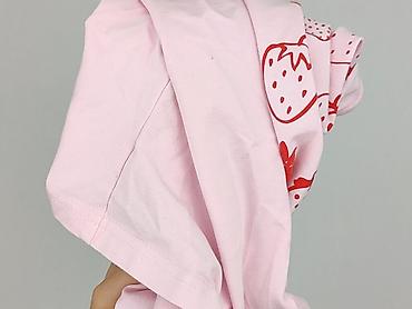 Bluzka damska w paski, rozmiar M - Krój: luźny, skrócony (crop), z obniżoną linią ramion i krótkimi rękawami - Wzór: drobne poziome paski w odcieniach pudrowego różu i bieli - Dekolt: okrągły - Ma...