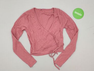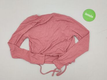 Jasnoróżowa bluzka damska o luźnym kroju, wykonana z wiskozy. Charakteryzuje się dekoltem w kształcie litery V z wiązaniem, co pozwala na regulację. Rękawy o długości 3/4 są szerokie, zakończone ro...