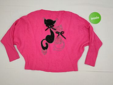 Czarna bluzka z długim rękawem, ozdobiona dużym motywem kociej głowy z drobnych, błyszczących dżetów na przodzie. - Fason z okrągłym dekoltem. - Delikatnie bufiaste rękawy przy ramionach. - Mate...Stan:
