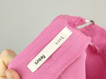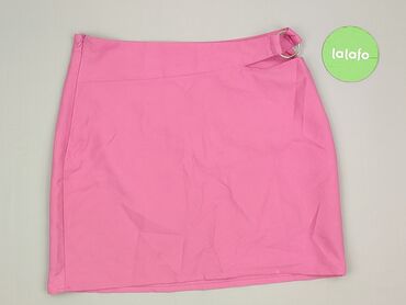 Różowa spódnica mini Sinsay - Krój: prosta, lekko dopasowana, długość przed kolano - Kolor: intensywny róż - Pas: szeroki, z ozdobnym paskiem i metalową klamrą w kształcie kółka - Zapięcie: suwak ...