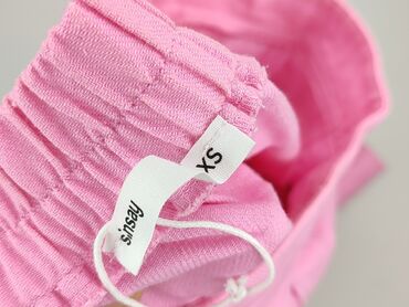 Różowe spodnie damskie Sinsay - Rozmiar: XS (z metki) - Fason: proste, luźniejsze nogawki - Talia: elastyczna guma ze sznurkiem do regulacji, końcówki sznurka z ozdobnymi koralikami - Kieszenie: d...